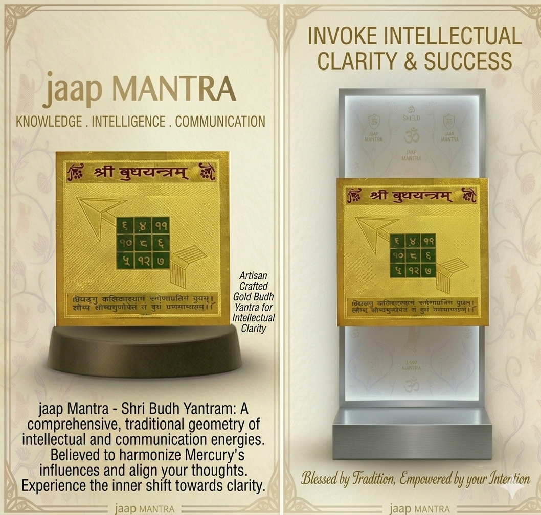 Shri Budh Yantram is a symbolic “mental weapon” that represents the focus and direction of the intellect. In Vedic astrology, the planet Mercury (Budh) governs communication, calculation, and reasoning.