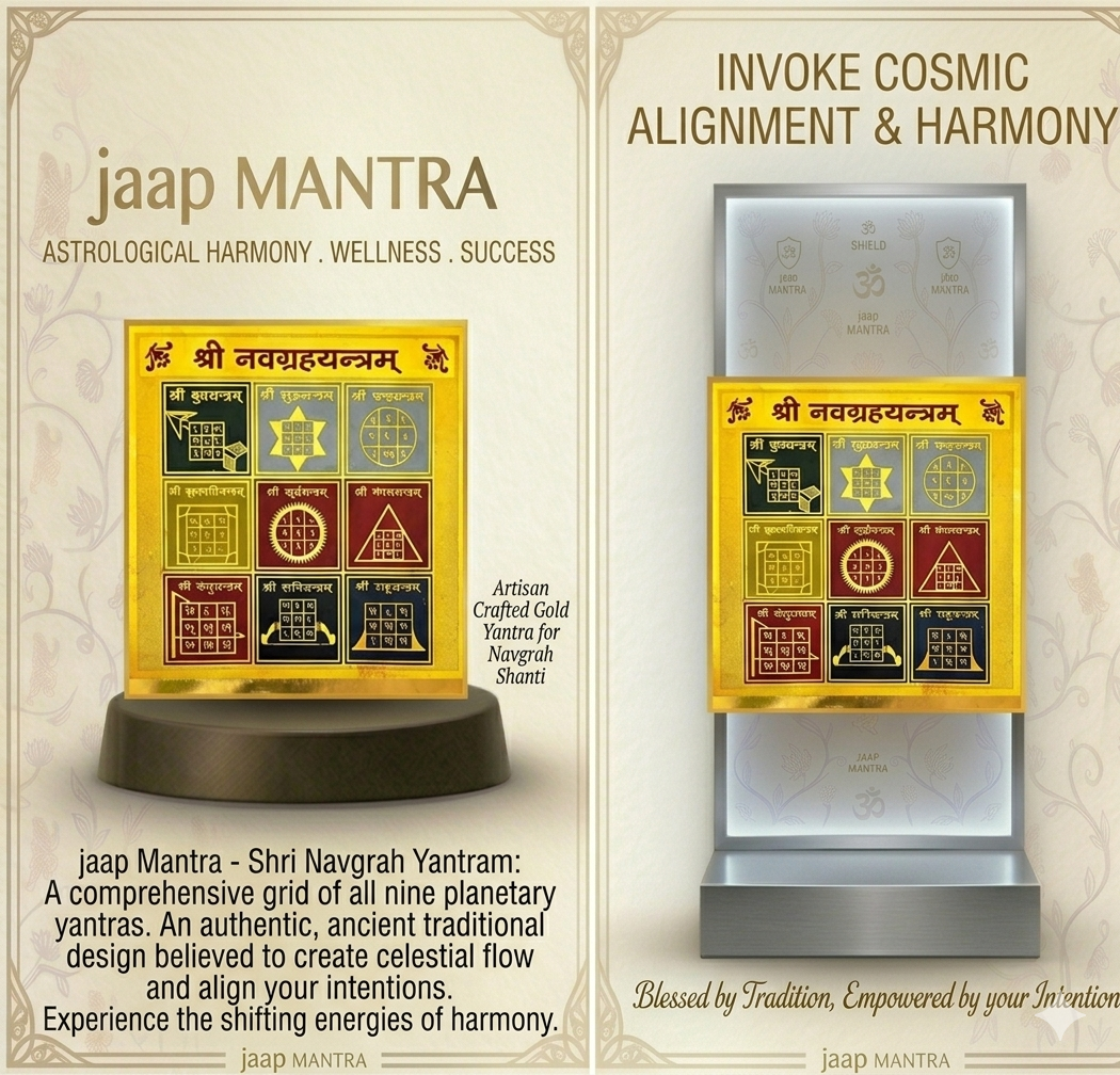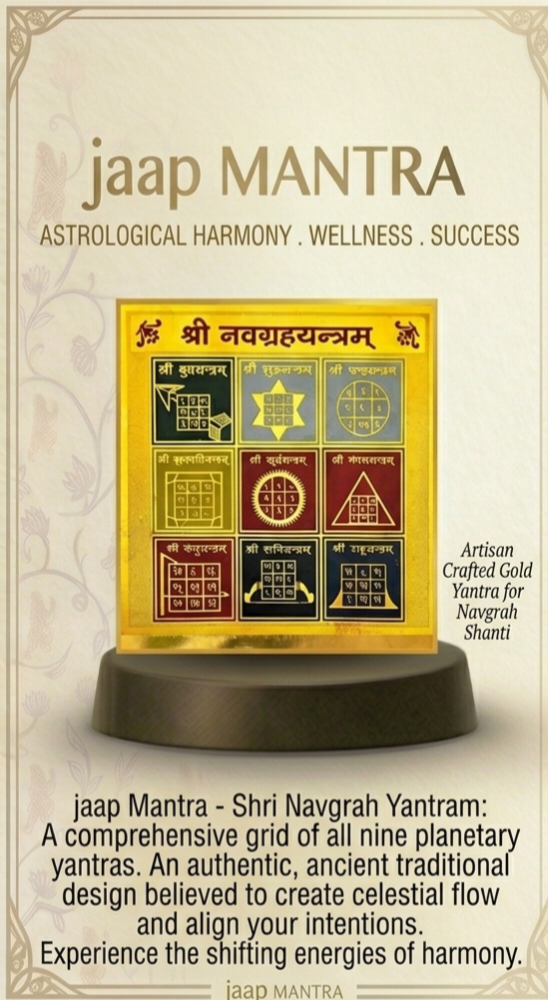 The Shri Navgrah Yantram is a sacred Vedic instrument designed to harmonize the energies of the nine celestial bodies (planets) in Indian astrology. It serves as a comprehensive tool for spiritual and astrological balance.