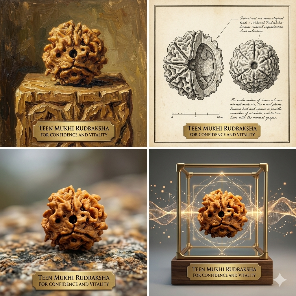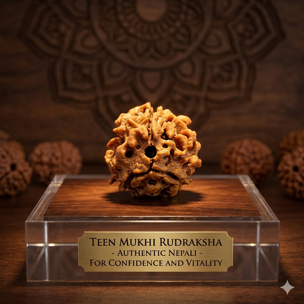& Free ShippingThe Teen Mukhi Rudraksha is worn to purify past karma and release the mind from feelings of guilt or fear. It helps the wearer transform laziness into energy while boosting self-confidence and mental clarity.