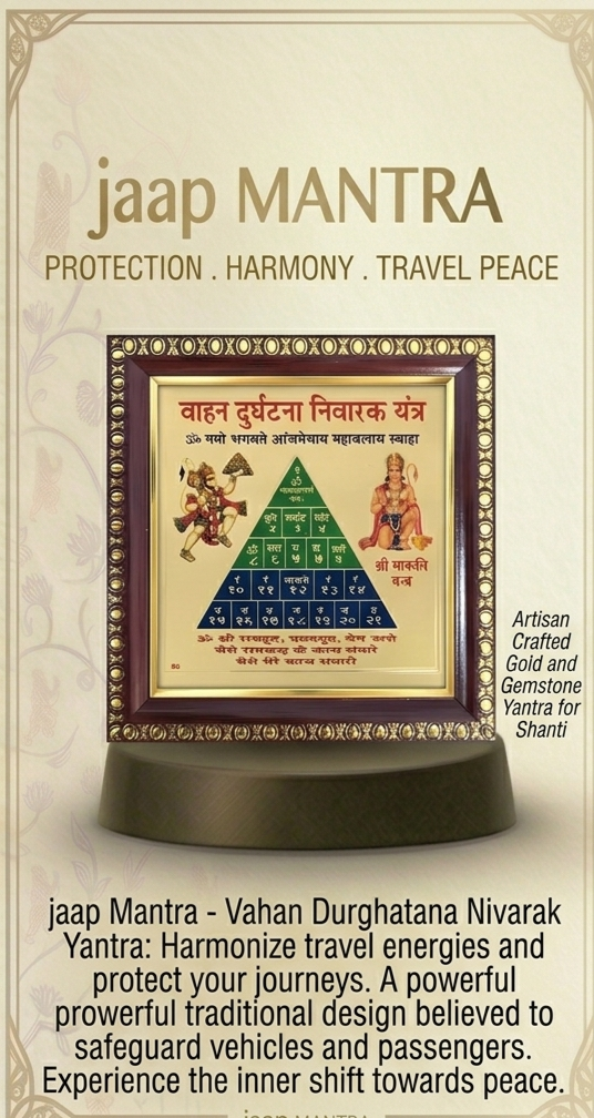 The Vahan Durghatana Nivarak Yantra, a traditional spiritual tool specifically designed for vehicle safety and protection during travel.